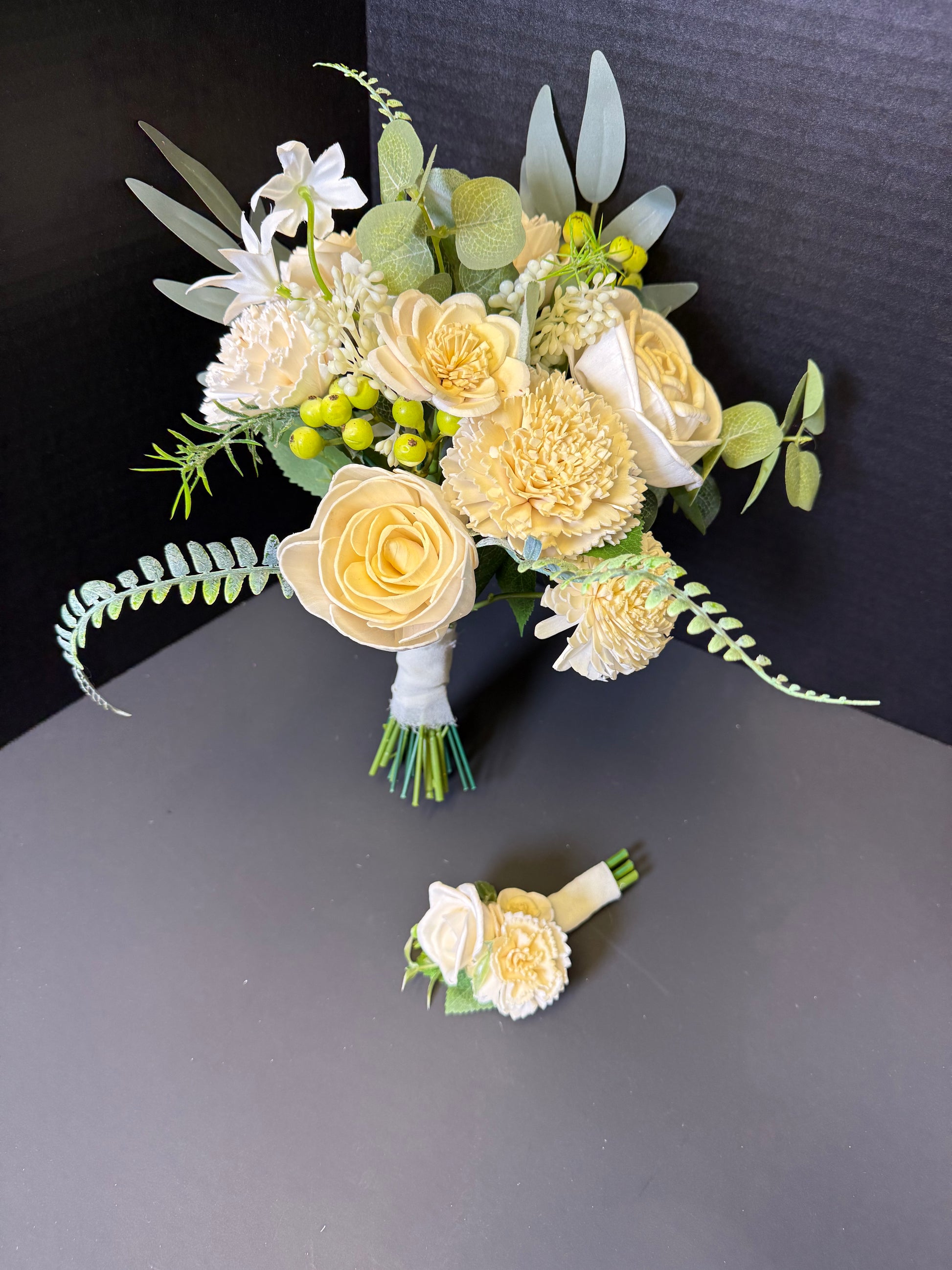 Champagne Prom Bouquet Set | Wood Flower Keepsake | Boutonniere or Arm Garter